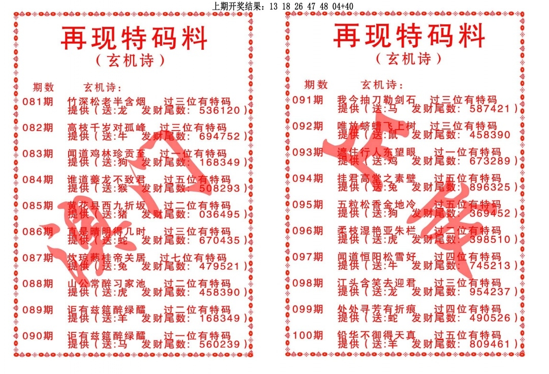 再现特码料